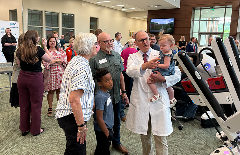 UNC Health Appalachian’s Watauga Medical Center in Boone, home to the first da Vinci 5 surgical robot in the state of North Carolina, partnered with the Beaver College of Health Sciences to host a “Meet the Robot and Surgeons” community event at Levine Hall in mid-May.
