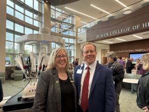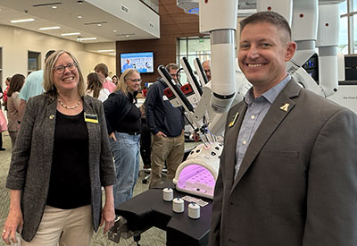 More than 100 attendees were able to use a simulator connected to a da Vinci 5 robot set up in the Lewis Atrium. The experience allowed them to demonstrate how the technology works, talk with local surgeons about how they are using the technology in surgical procedures, and learn more about robotic surgery.
